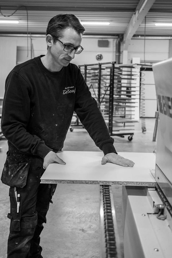 In onze atelier te Izegem brengen wij uw ontwerp tot leven dankzij een perfect samenspel tussen het machinepark en het pure vakmanschap. Na een eerste opstelling en kwaliteitscontrole in de atelier wordt het gerealiseerde ontwerp in uw interieur geplaatst. Op deze manier vormt het eindresultaat een perfecte weerspiegeling van uw visie en uw verwachtingen.